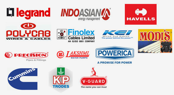We deal with super brands in electrical goods, i.e. Legrand, Indo Asian, Havells, C & S Polycab, KEI, Finolex, Precession/Modi Pipes & fittings, Laxmi Pumps. Safe Earthing Electrodes, Powerica Generators.